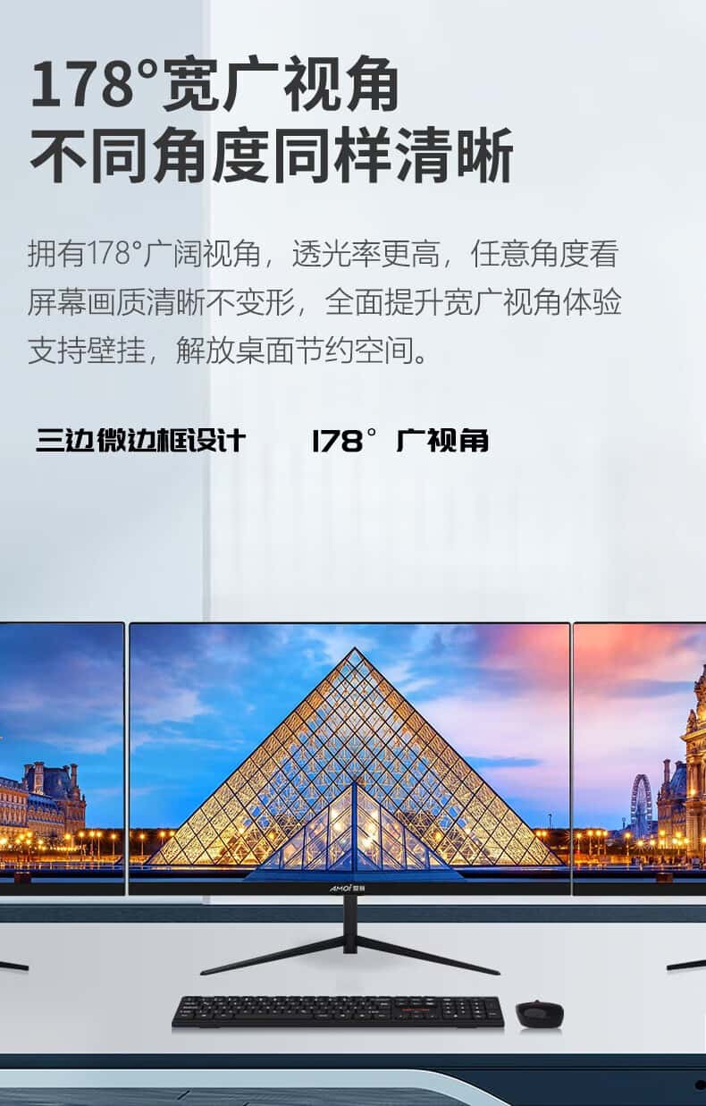 夏新(Amoi)27英寸曲面电脑显示器高色域高清办公家用网吧台式显示屏电竞游戏27英寸IPS直面【窄边框】75hz黑色