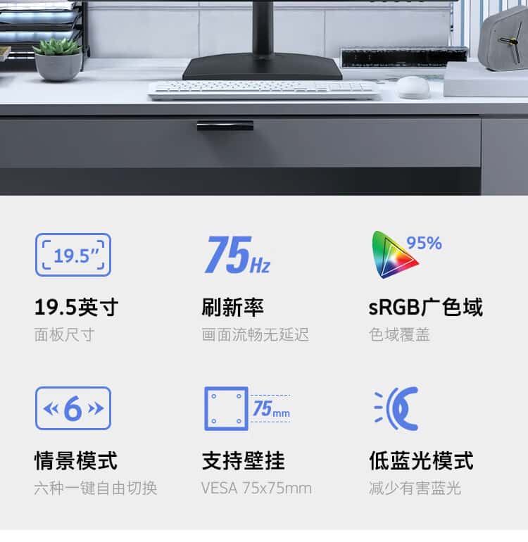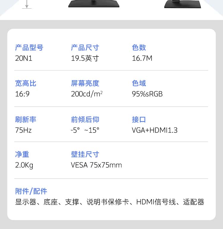 创维(Skyworth)19.5英寸办公显示器75Hz家用广视角可壁挂HDMI电脑显示器全高清液晶显示屏(20N1)