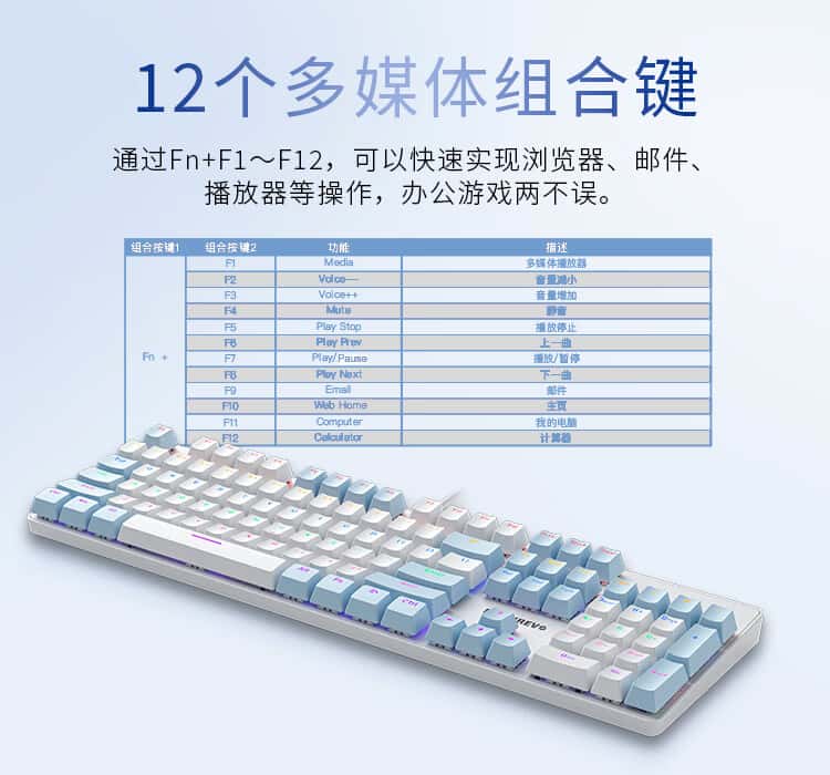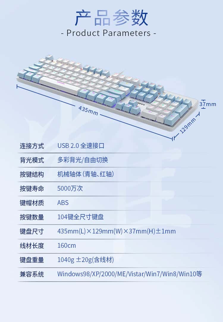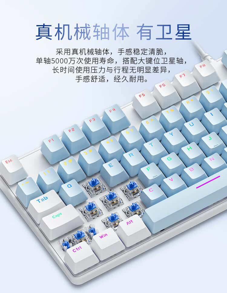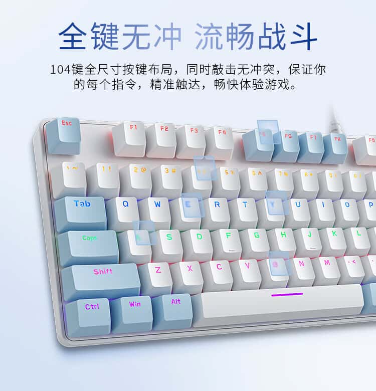 机械革命耀·K330机械键盘有线键盘游戏键盘金属面板104键混彩背光键盘全键无冲电脑键盘蓝白色青轴