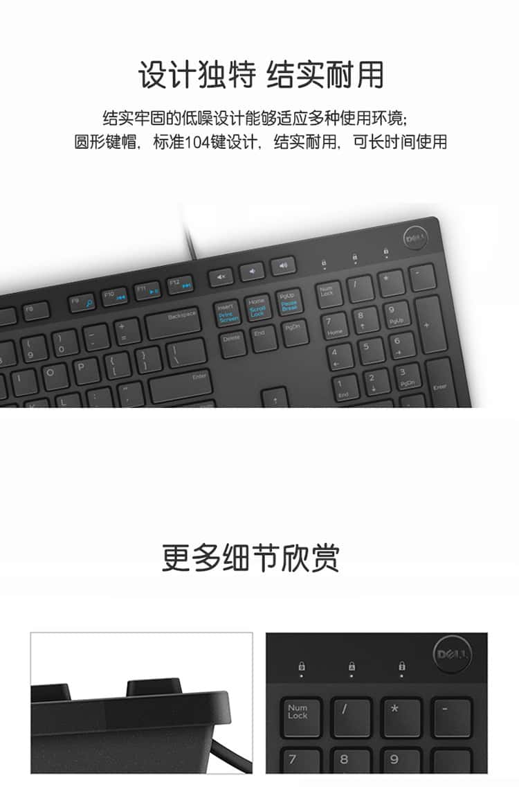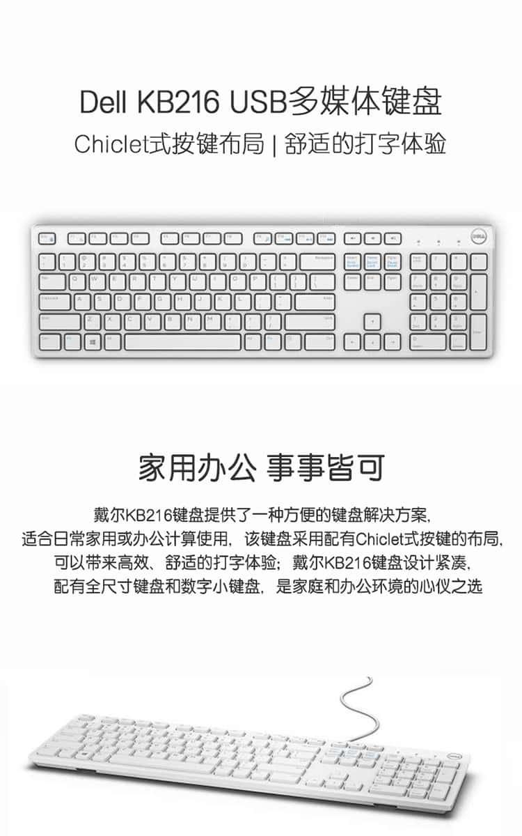 戴尔(DELL)KB216键盘有线多媒体键盘办公键盘全尺寸键盘即插即用键盘(黑色)