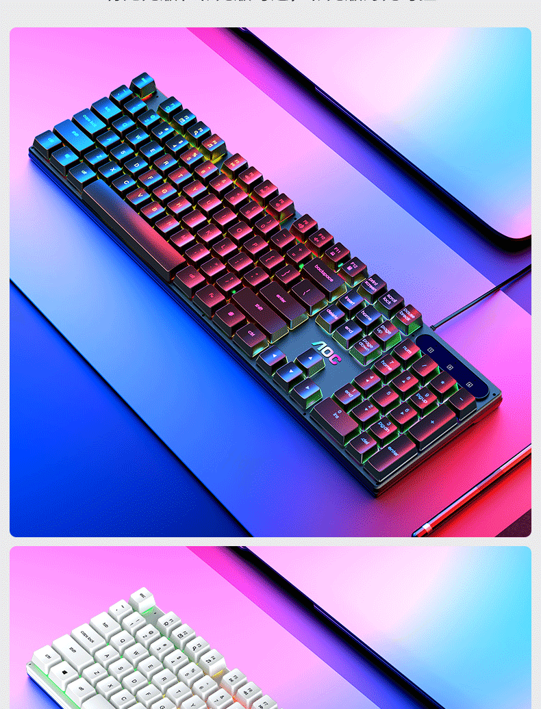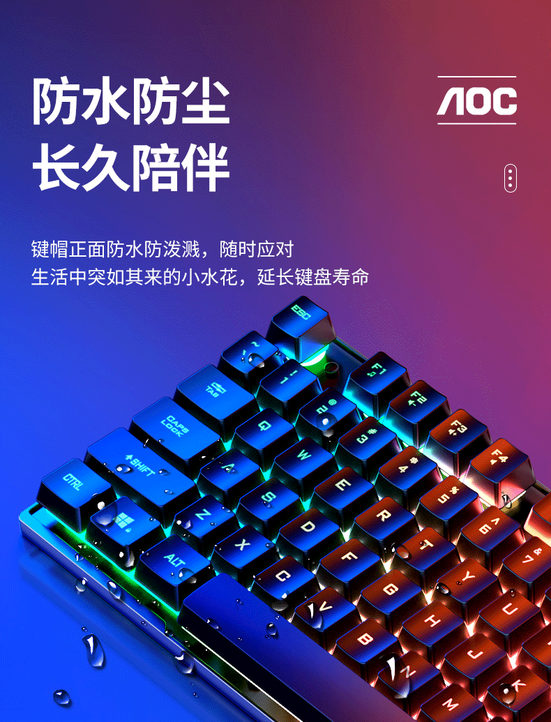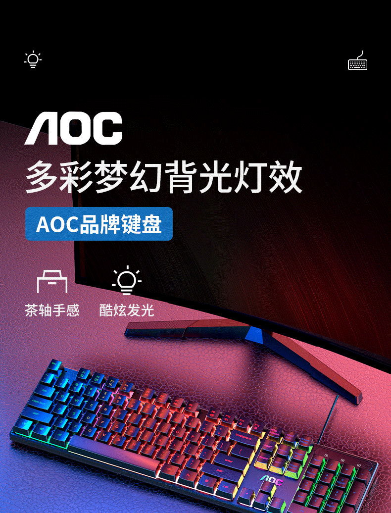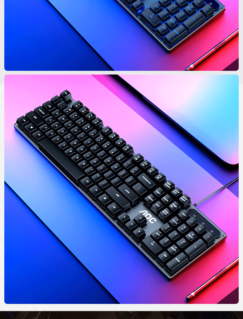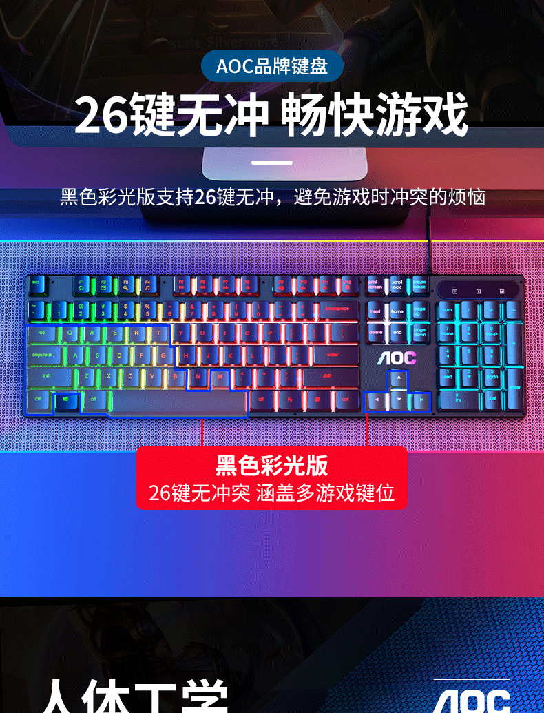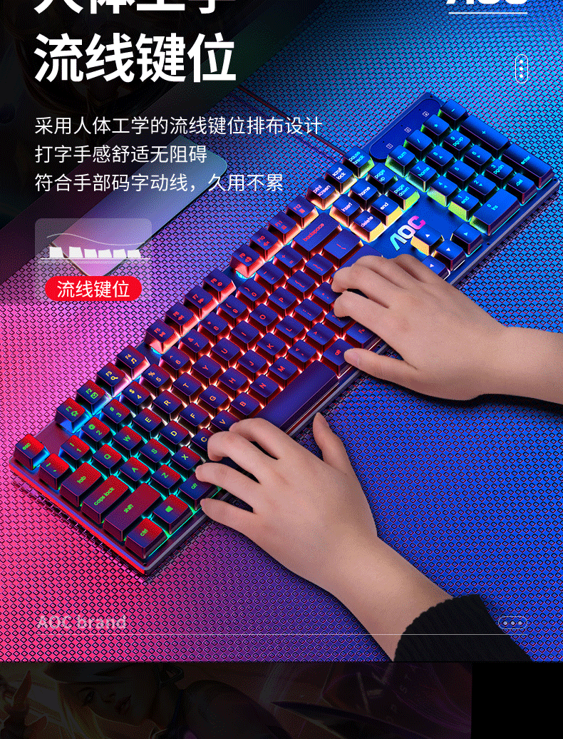 AOC真机械手感键盘鼠标套装有线游戏背光发光台式电脑外设笔记本办公lol吃鸡网吧电竞静音薄膜键鼠KB121白色(彩光版)