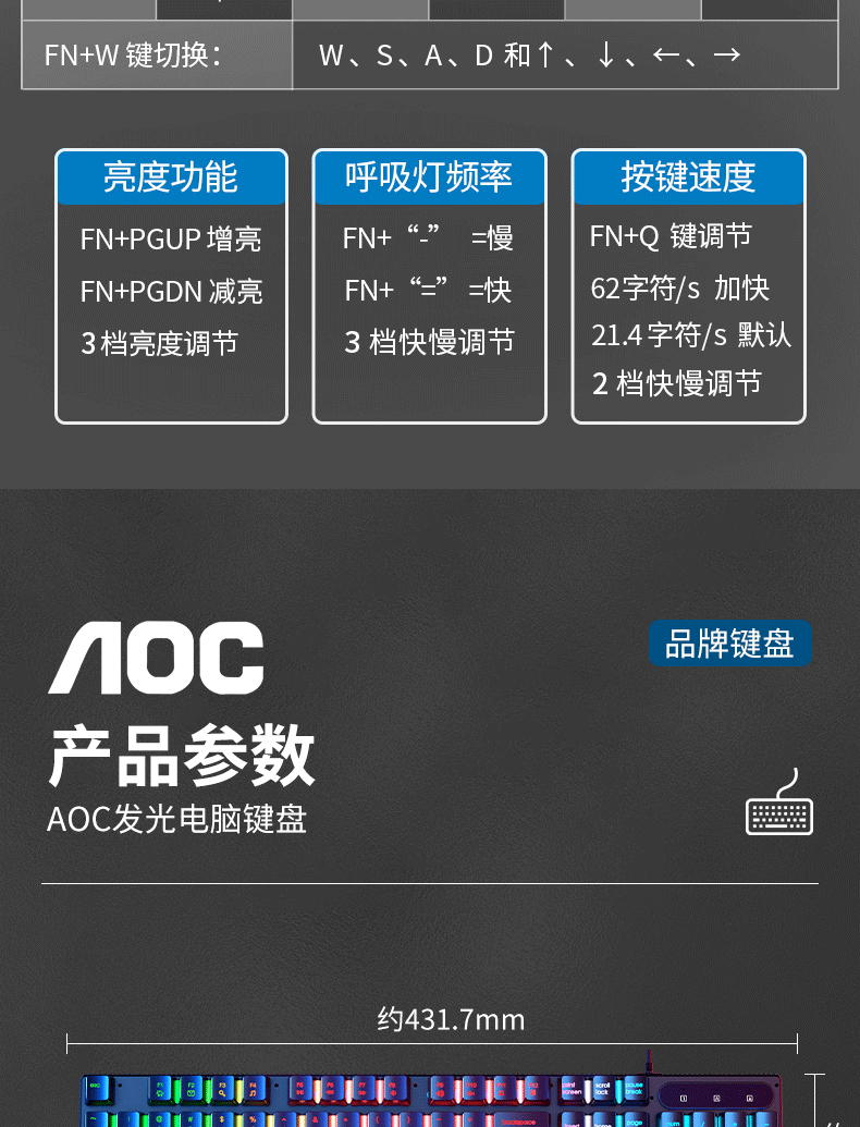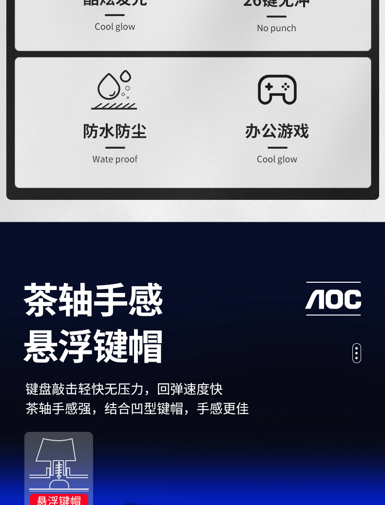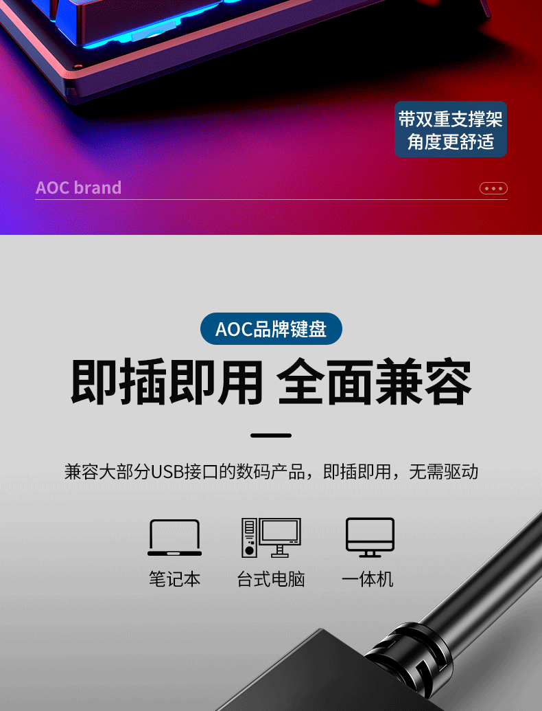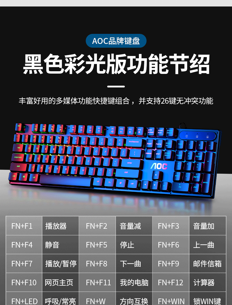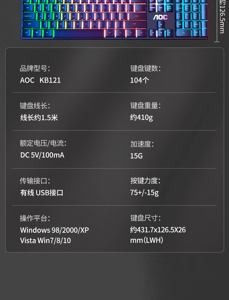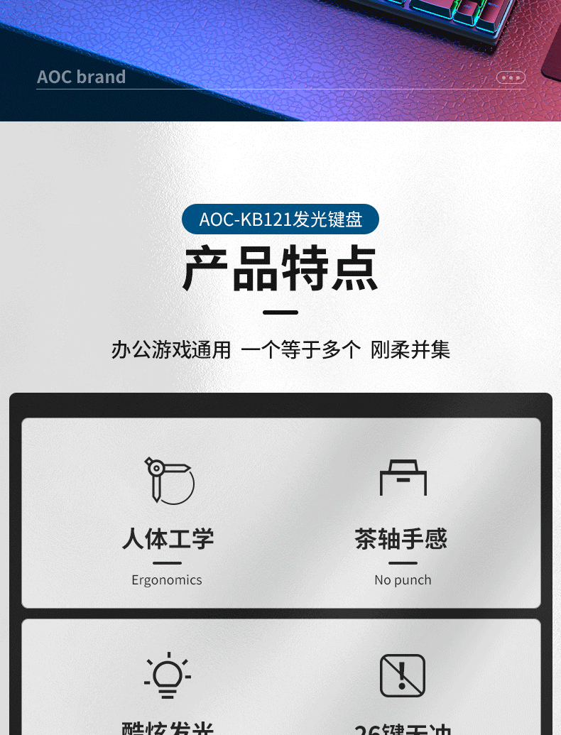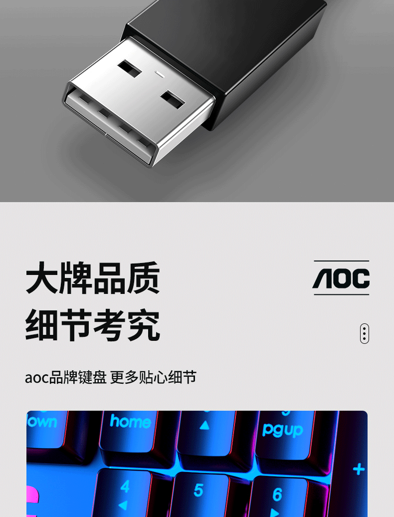 AOC真机械手感键盘鼠标套装有线游戏背光发光台式电脑外设笔记本办公lol吃鸡网吧电竞静音薄膜键鼠KB121白色(彩光版)