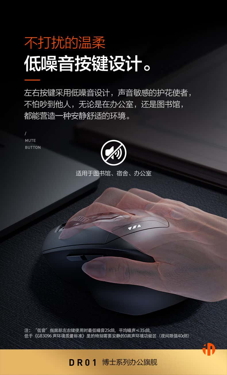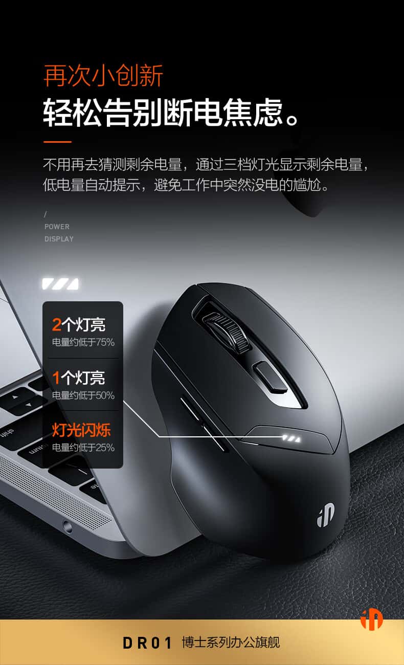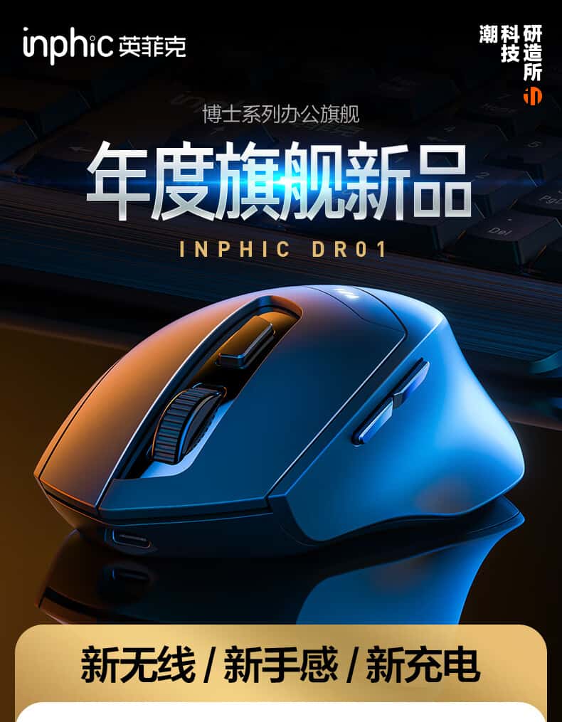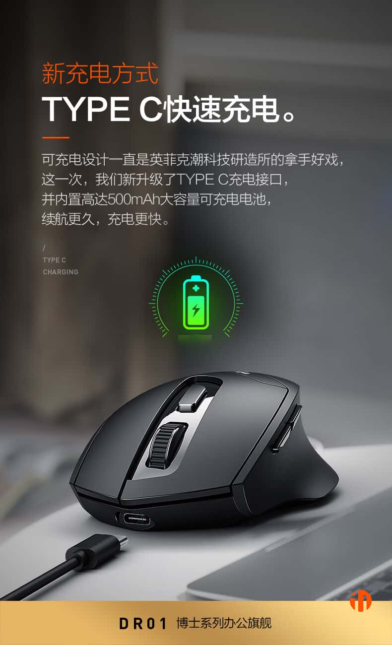 英菲克DR01无线蓝牙三模鼠标可充电人体工学舒适握感