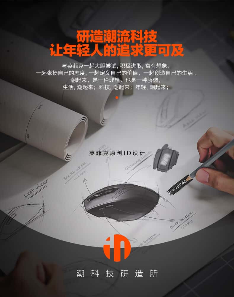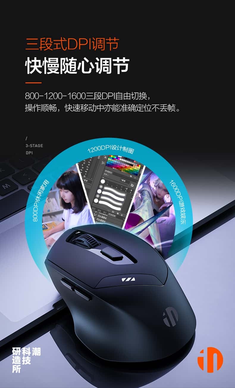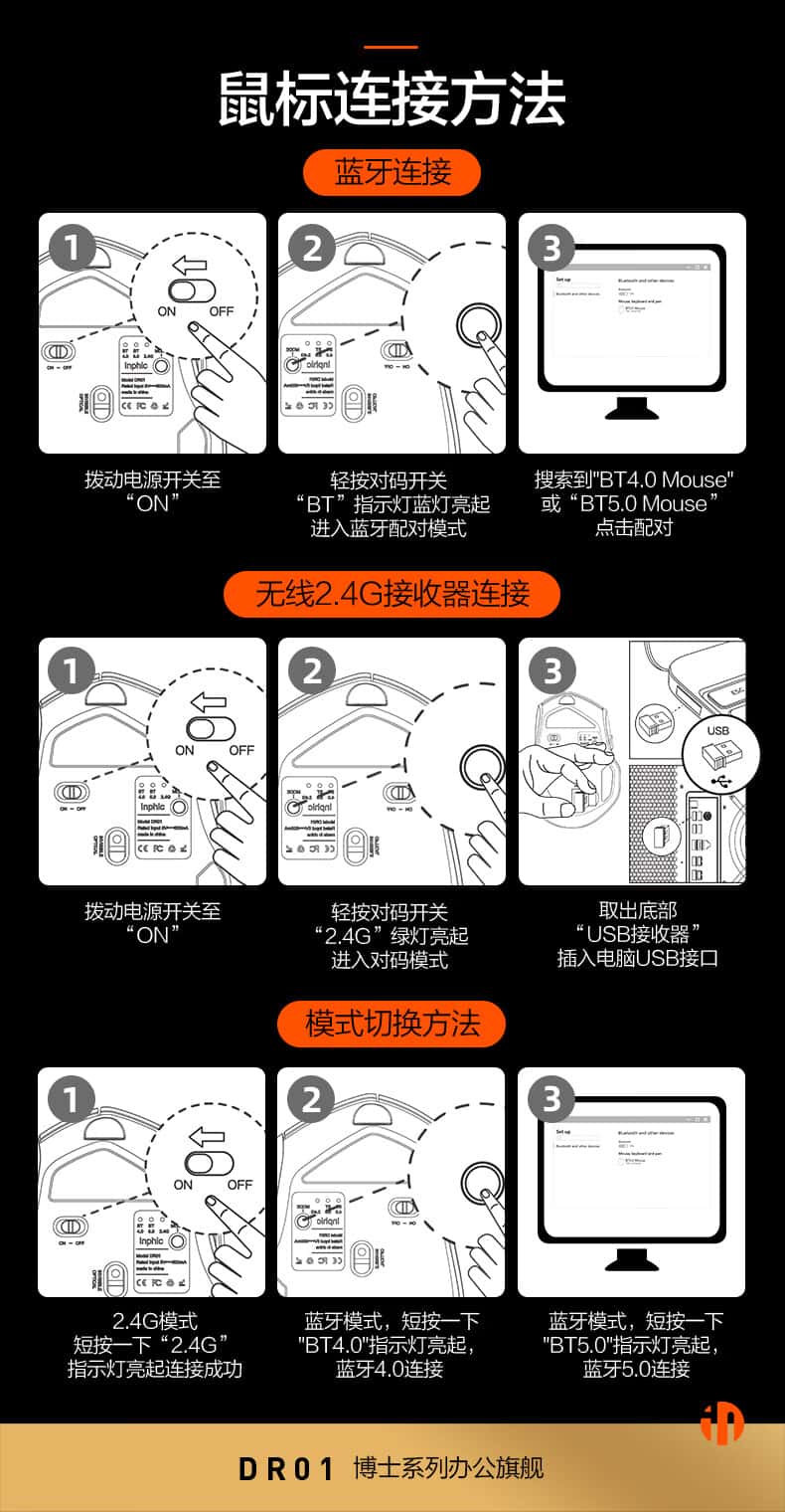 英菲克DR01无线蓝牙三模鼠标可充电人体工学舒适握感