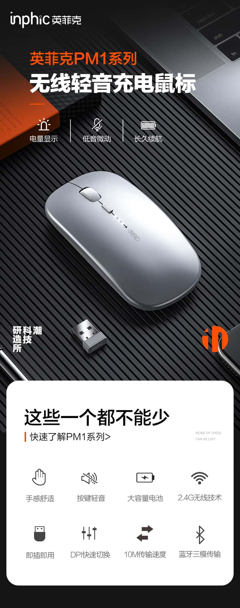 英菲克PM1无线鼠标可充电