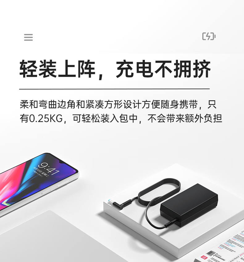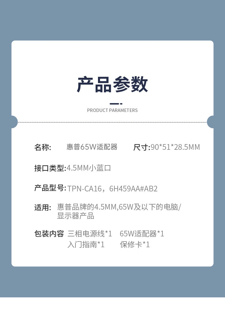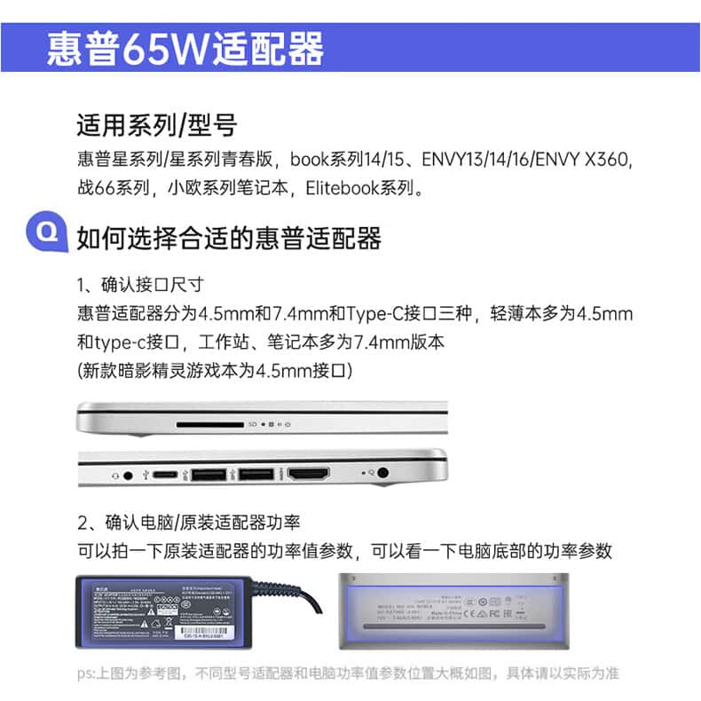 惠普(HP)65W电源适配器笔记本电脑充电器旅行便携式惠普笔记本充电线战66充电器星14/15/book系列