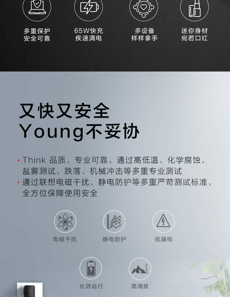 ThinkPad联想thinkplus口红电源65Wtype-c充电器,无充电线ThinkPad/联想笔记本电脑/手机/平板电源适配器
